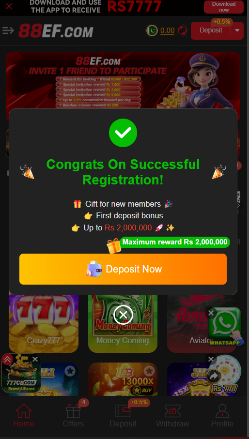 This is "Passive Income." While you sleep, your referred network is playing games, and a percentage of the "House Edge" is credited to your account. Top-tier influencers in Pakistan are currently earning over 100,000 PKR monthly just through the 88EF affiliate system.