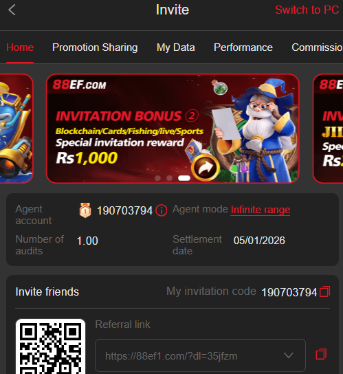 This is "Passive Income." While you sleep, your referred network is playing games, and a percentage of the "House Edge" is credited to your account. Top-tier influencers in Pakistan are currently earning over 100,000 PKR monthly just through the 88EF affiliate system.