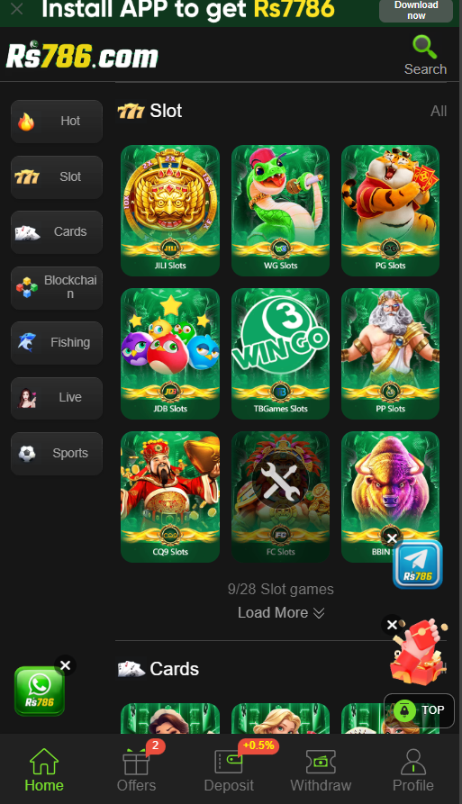 Dear casino enthusiast we are back with another latest Pakistani online game that not only offers limitless 300+ games but also provide numerous earning opportunities on a single platform. Download RS786 Game on your Android or iOS devices for free from the official link given above and start to convert your every Free minute into real cash while having fun. Its huge game Library includes slots, poker, live sports, and lottery games. Both experienced and casual players can easily access to the game of their interest though a user friendly interface and enjoy a thrilling betting experience.