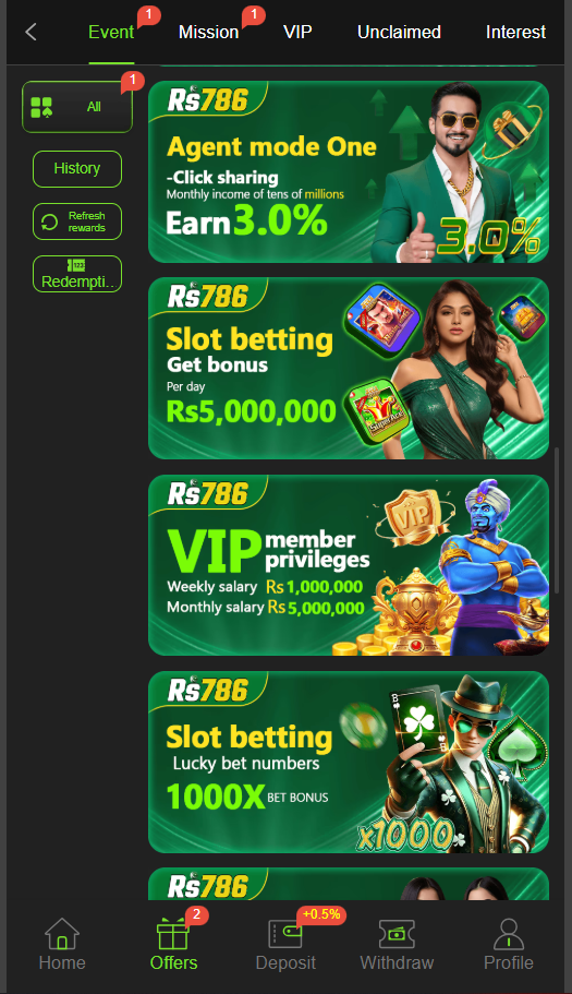 In RS 786 game apk, you can not only play betting games, but once you enter this game, you will not want to leave this game because this game offers bonuses and rewards to every player who downloads this game. There are a large number of deposit bonuses, VIP rewards, invitation bonuses, referral commission, and welcome bonuses in this game, from which you can take full advantage and increase your earning.